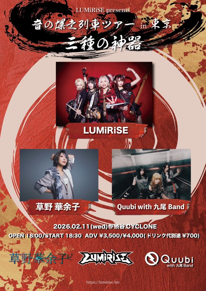 LUMiRiSE presents “音の爆走列車ツアー” 三種の神器-東京編-に草野華余子の出演が決定しました!